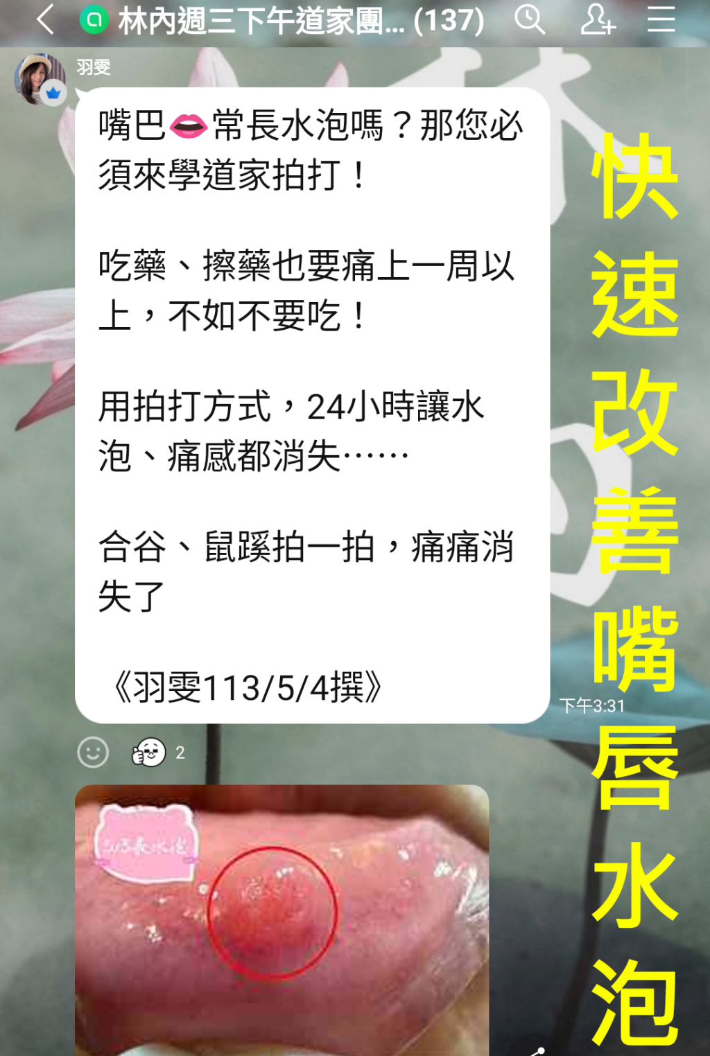 用道家拍法拍後,隔天結痂!