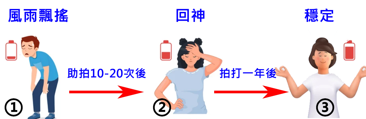 在助拍個約七至十次後,受拍者的精氣神就會有明顯的變化,受拍者本人或家人都可以感受到;