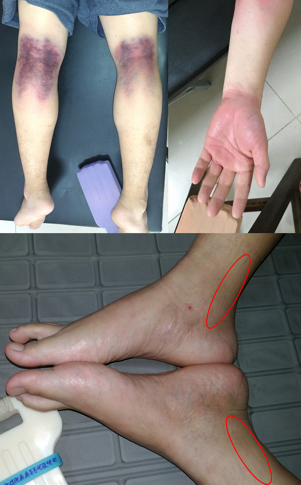 拍內腳踝位置(阿基里斯鍵),拍到不痛,通常花不到半小時就能當場改善五成以上,待七至十天痧退後,就可以恢復的很好。