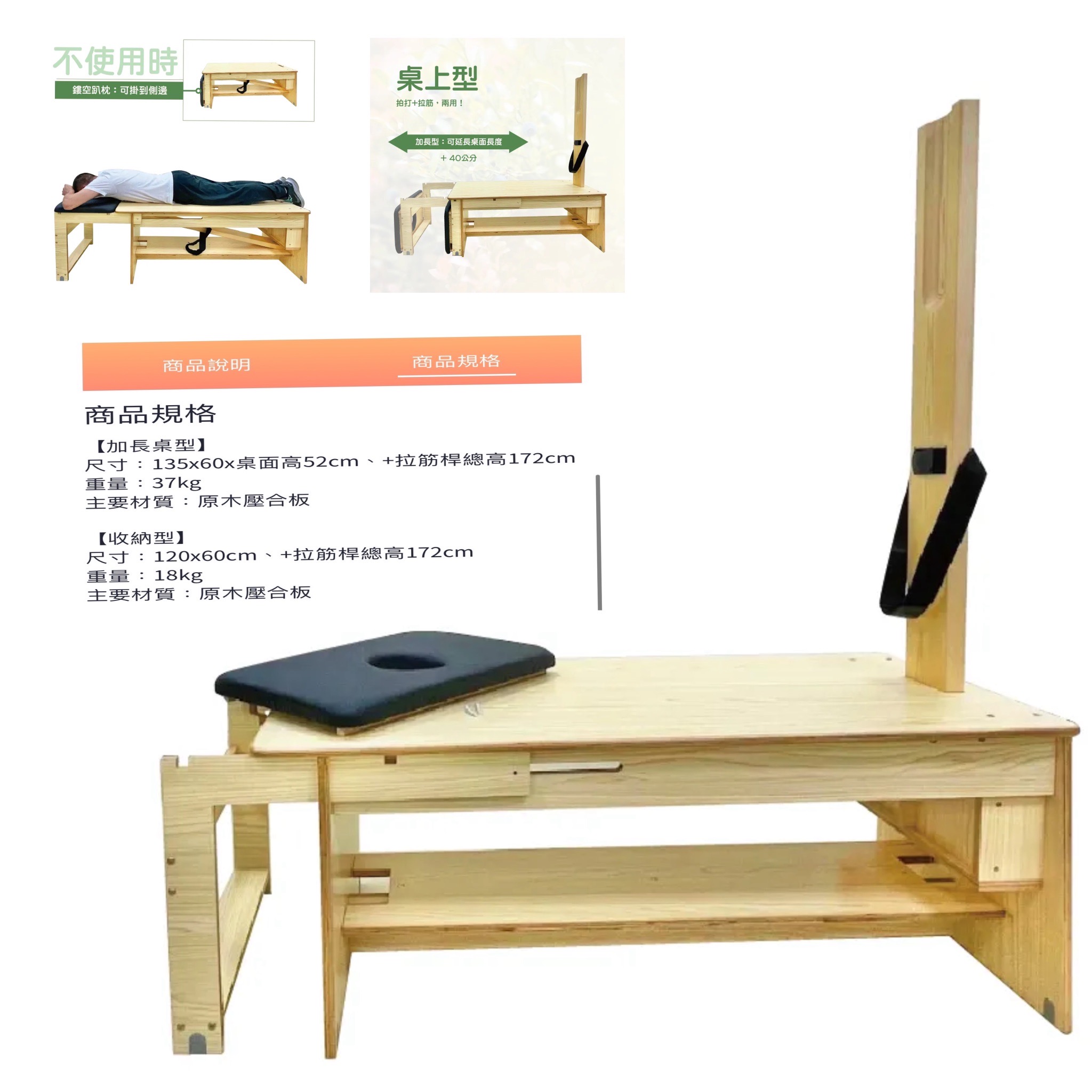拉筋椅建議用木頭製的,有同氣相求的效果,金屬製的會有金剋木的疑慮,可以自已做或請木工做,規格就按以下廠商做的規格就可以了: 本圖樣的拉筋椅為實木且經三層油漆製作,拍友們可自行聯絡李明菊小姐購置(0923344500)[ Line ID: 0923344500 ] 非大量定製,價格6900元/張(附綁腿)不含運費; 拉筋椅的規格,面長:135公分,面寬:60公分 面高:58公分 杆高:172公分,不管高度或是寬度,都符合道家拍法的要求; 註:本網站和這個項目的拉筋椅,無任何商業利益;