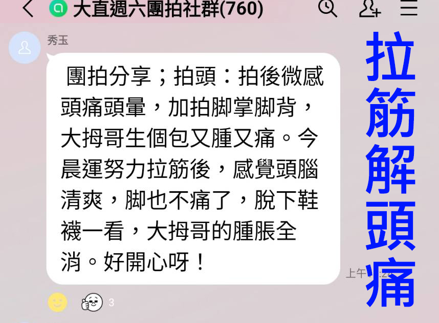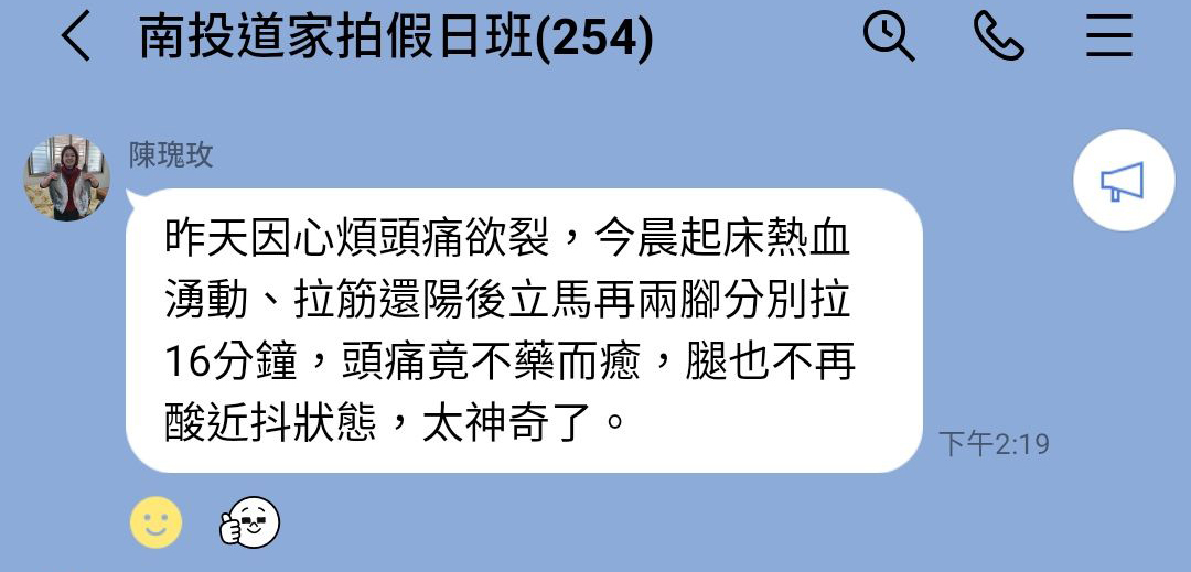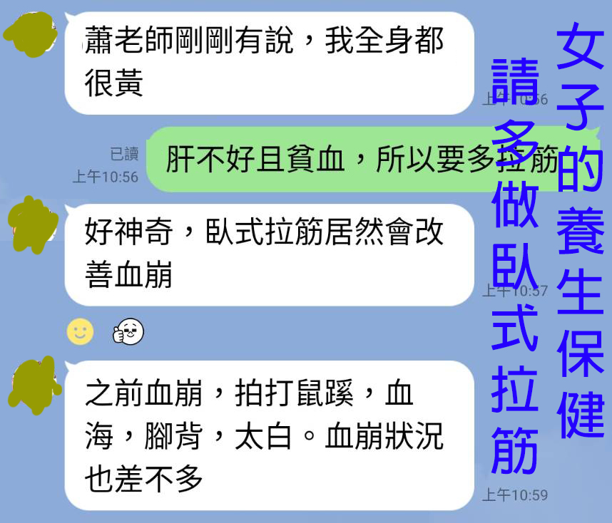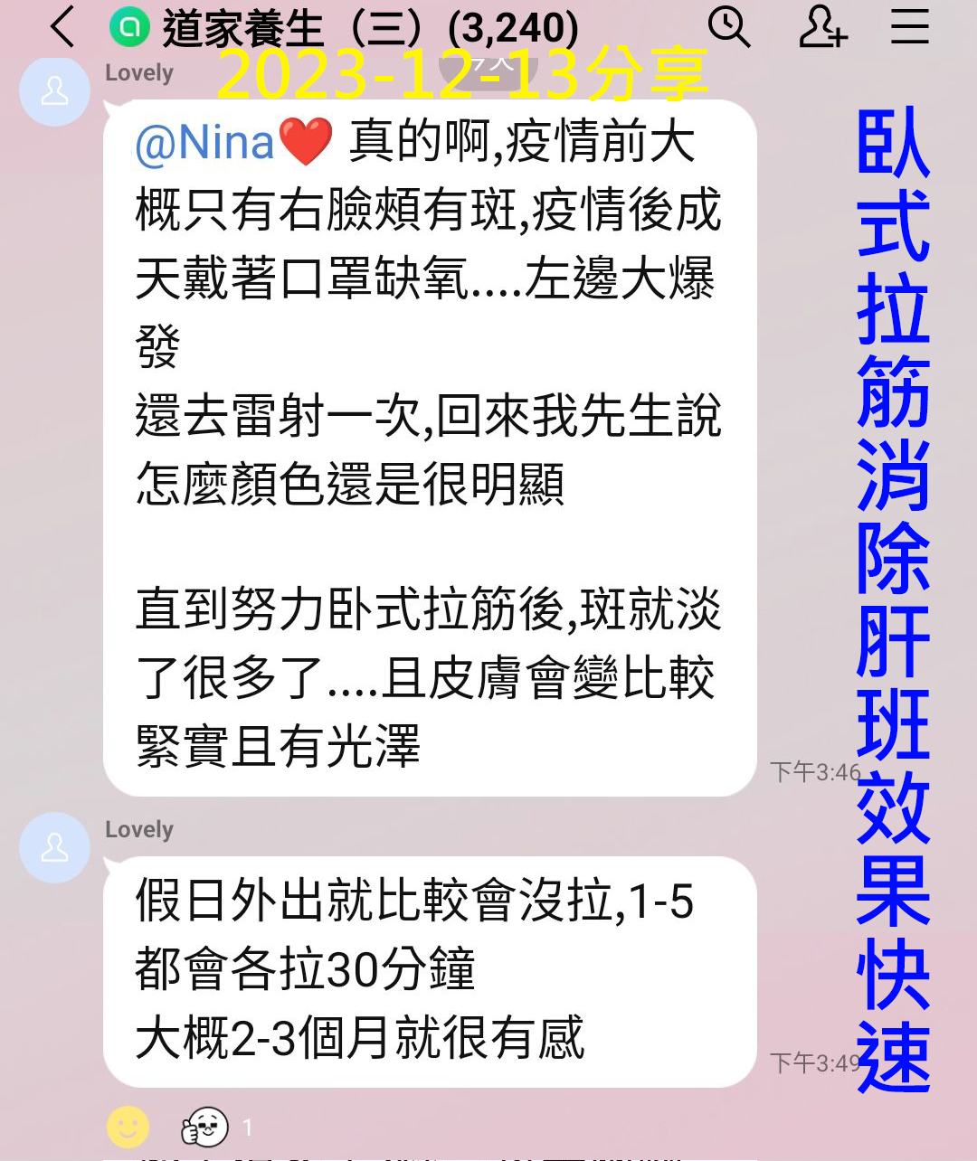 通常能每天拉筋,大約四個月後,就可以開始消除身上的色斑了。