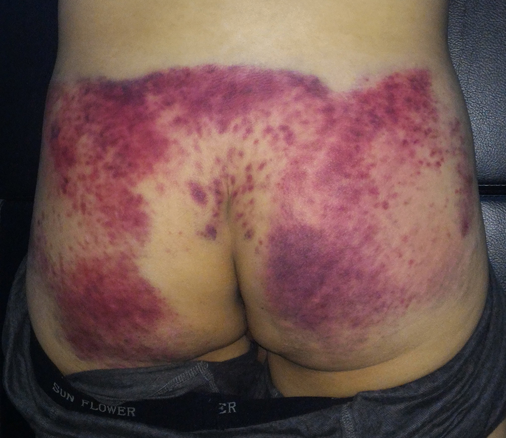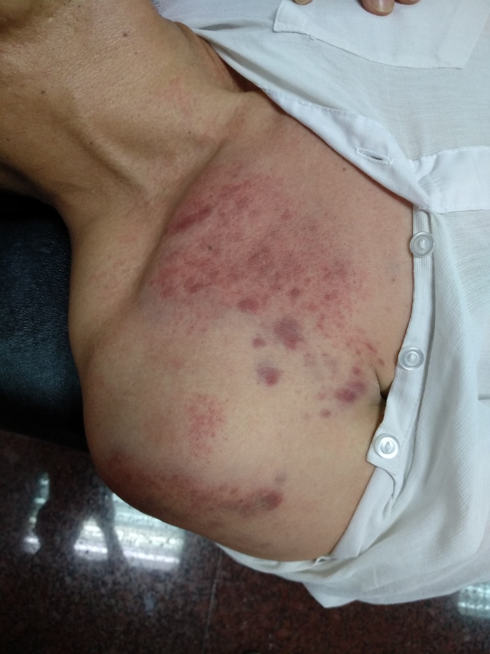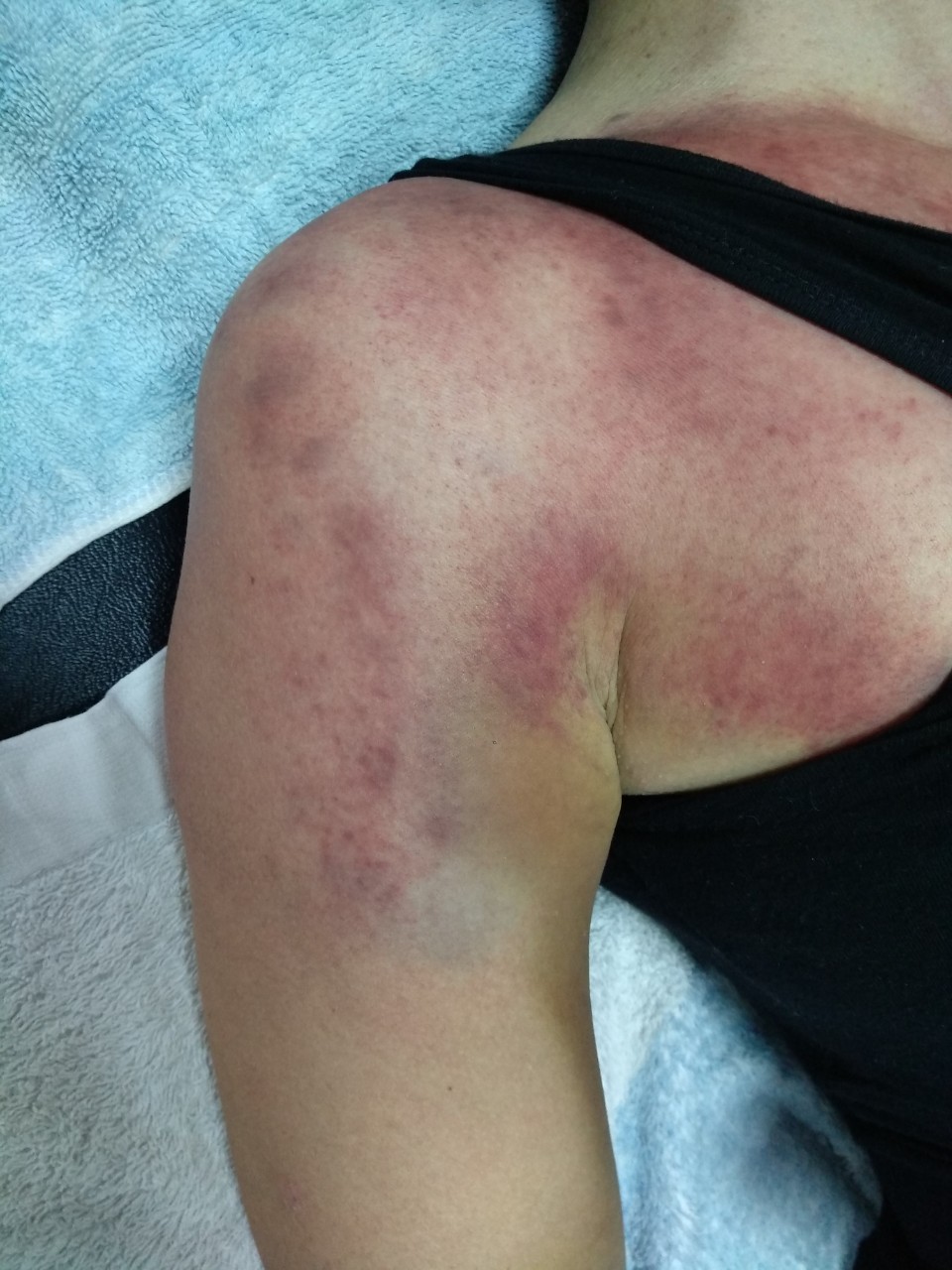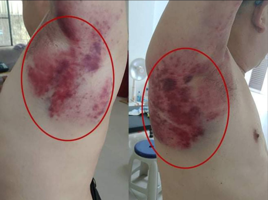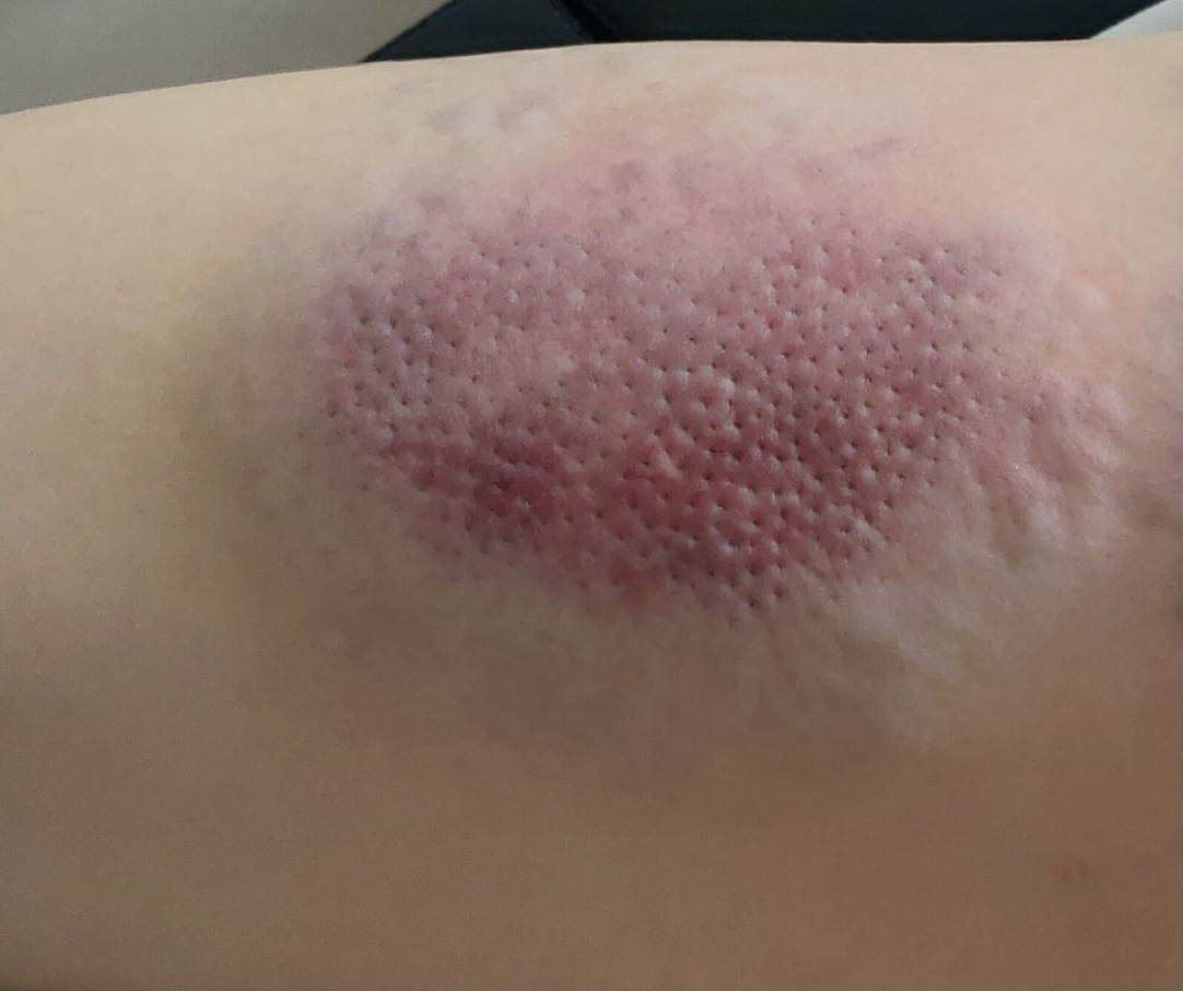 拍打後的出痧情形,看起來就好像是皮下出血一樣;