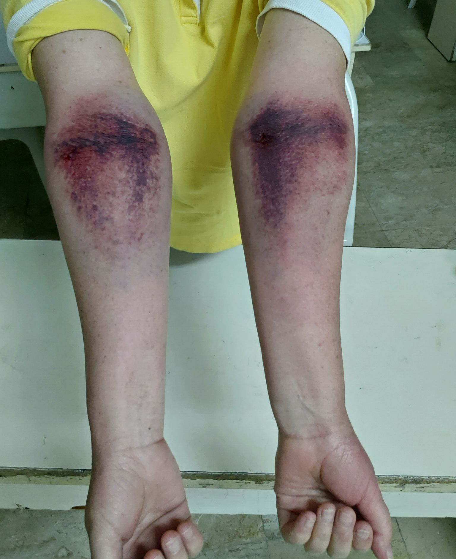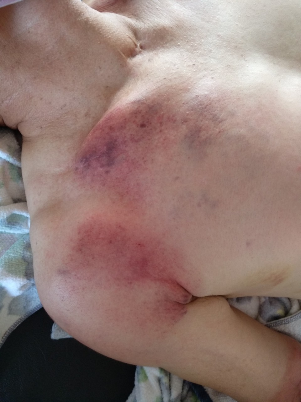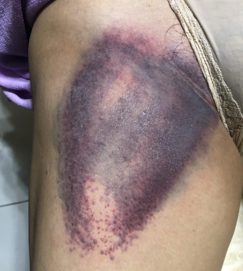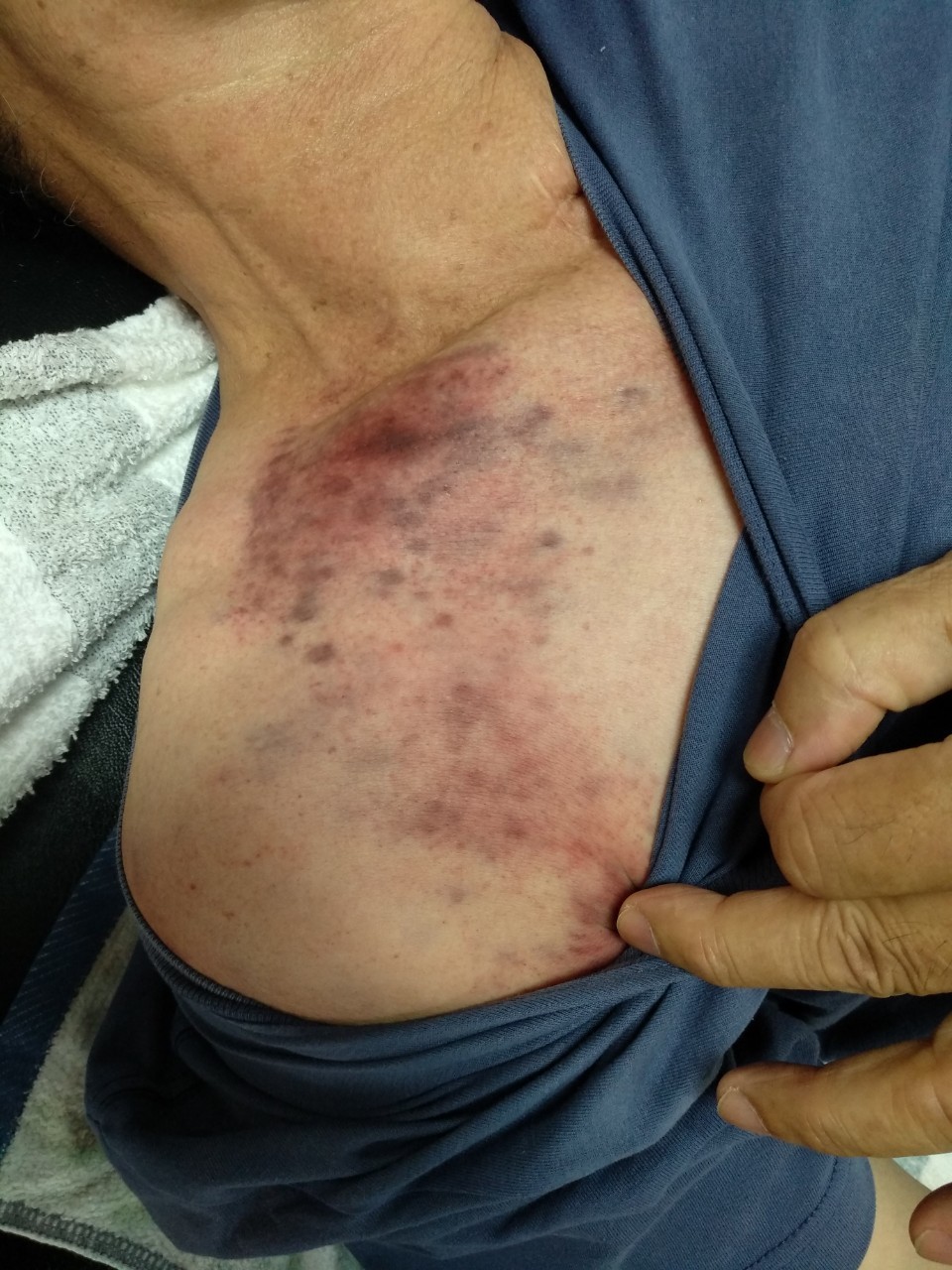 拍打後的出痧情形,看起來就好像是皮下出血一樣;