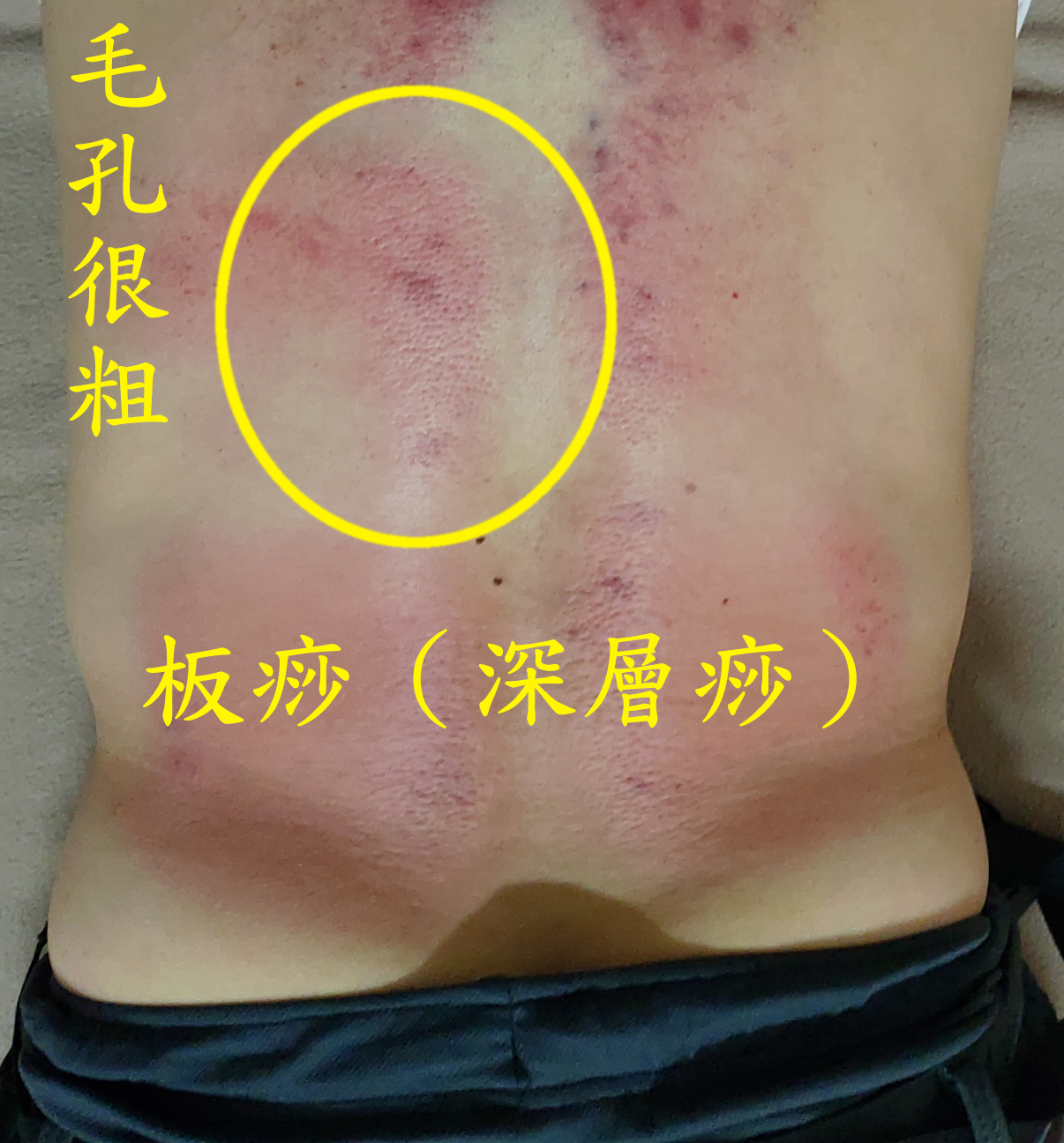 板痧又稱深層痧,特徵是拍後,毛孔粗且表皮硬。