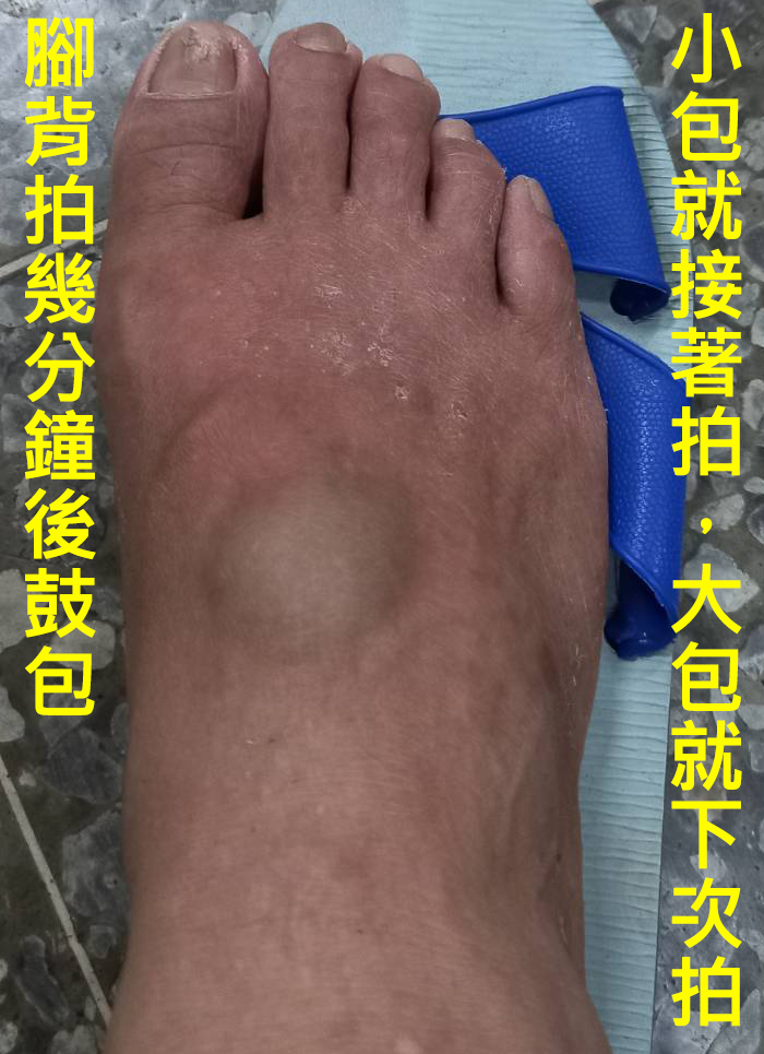 一般拍第二次,或第三次時,就不會有鼓包的情形,也就是不會有氣滯了,剩下的就是血瘀了。