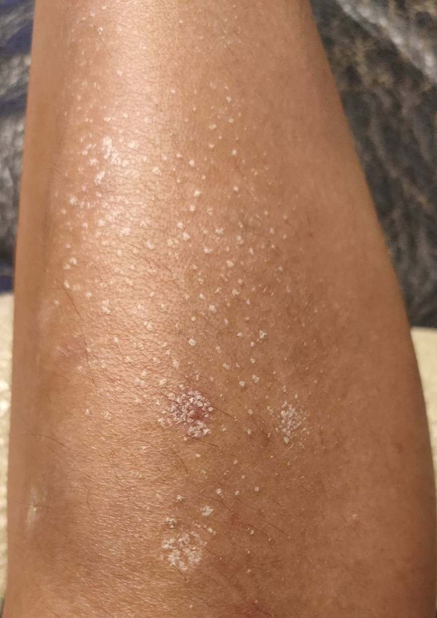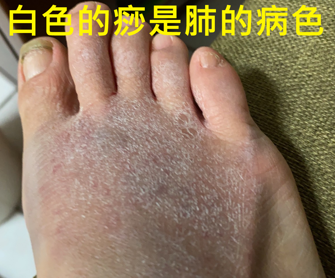 肺大腸的病色為白色,而肺主皮毛,所以拍打後,特別容易出現發白的皮膚屑屑;