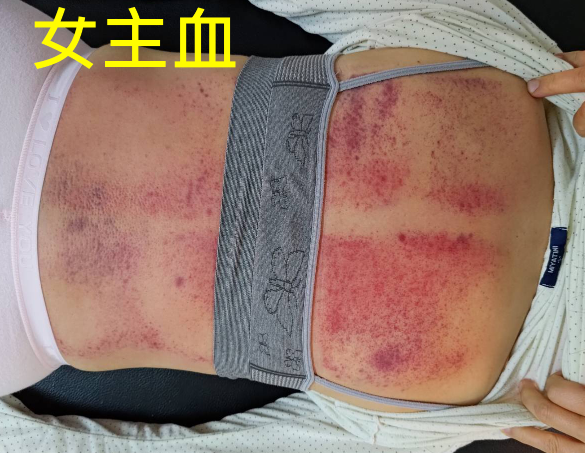 助拍大約十次後,脾不統血的情形就好多了,出痧的情形也不會有皮下出血的情形了。