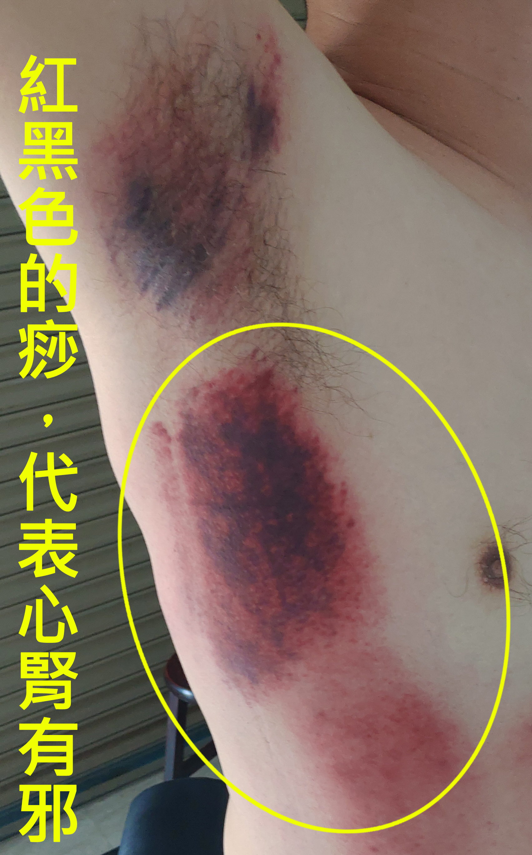 痧相含偏紅與偏黑的情形(心與腎有邪)