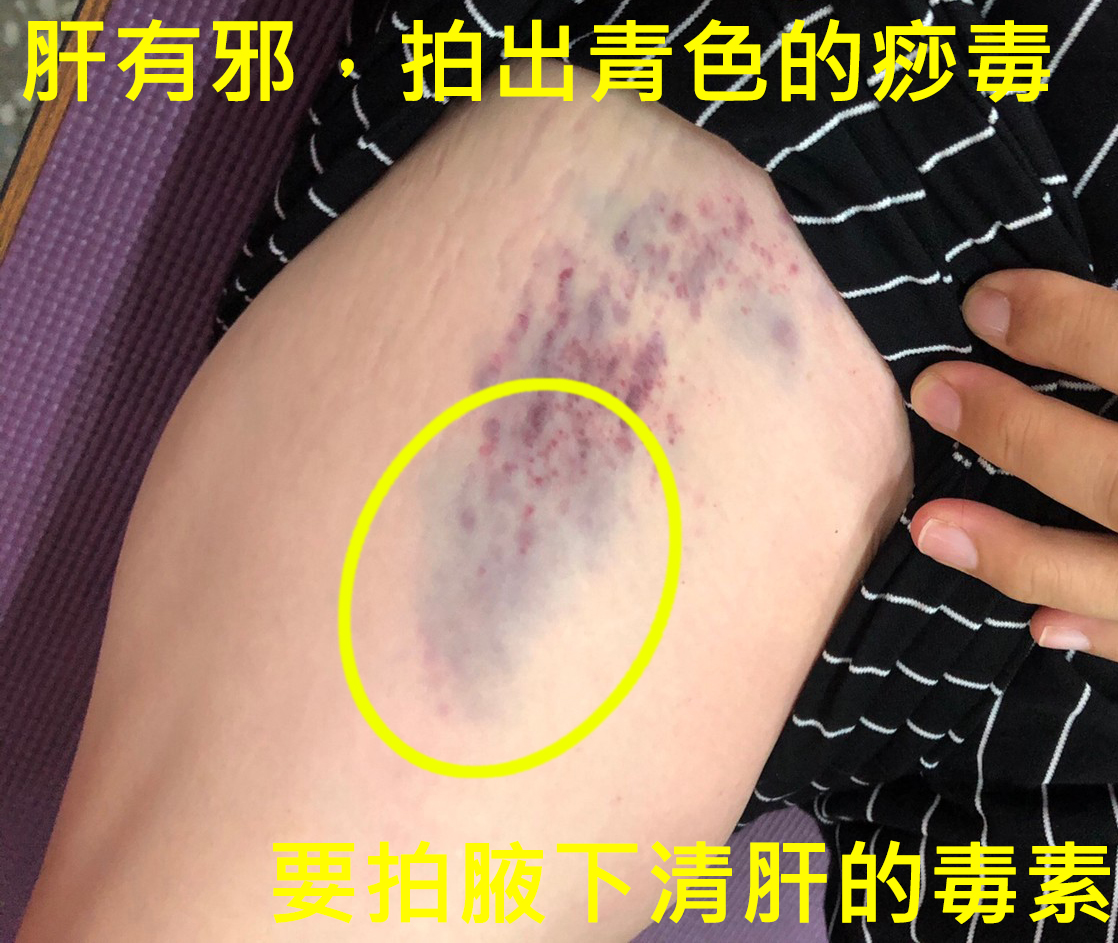 偏青的痧,肝膽的經絡要清瘀,急的時間拍8虛的腋下改善