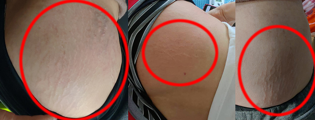 條紋痧的出現,常常是在妊娠紋,或是肥胖紋的位置;