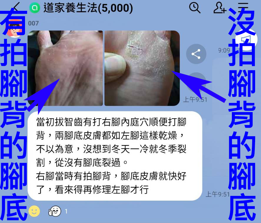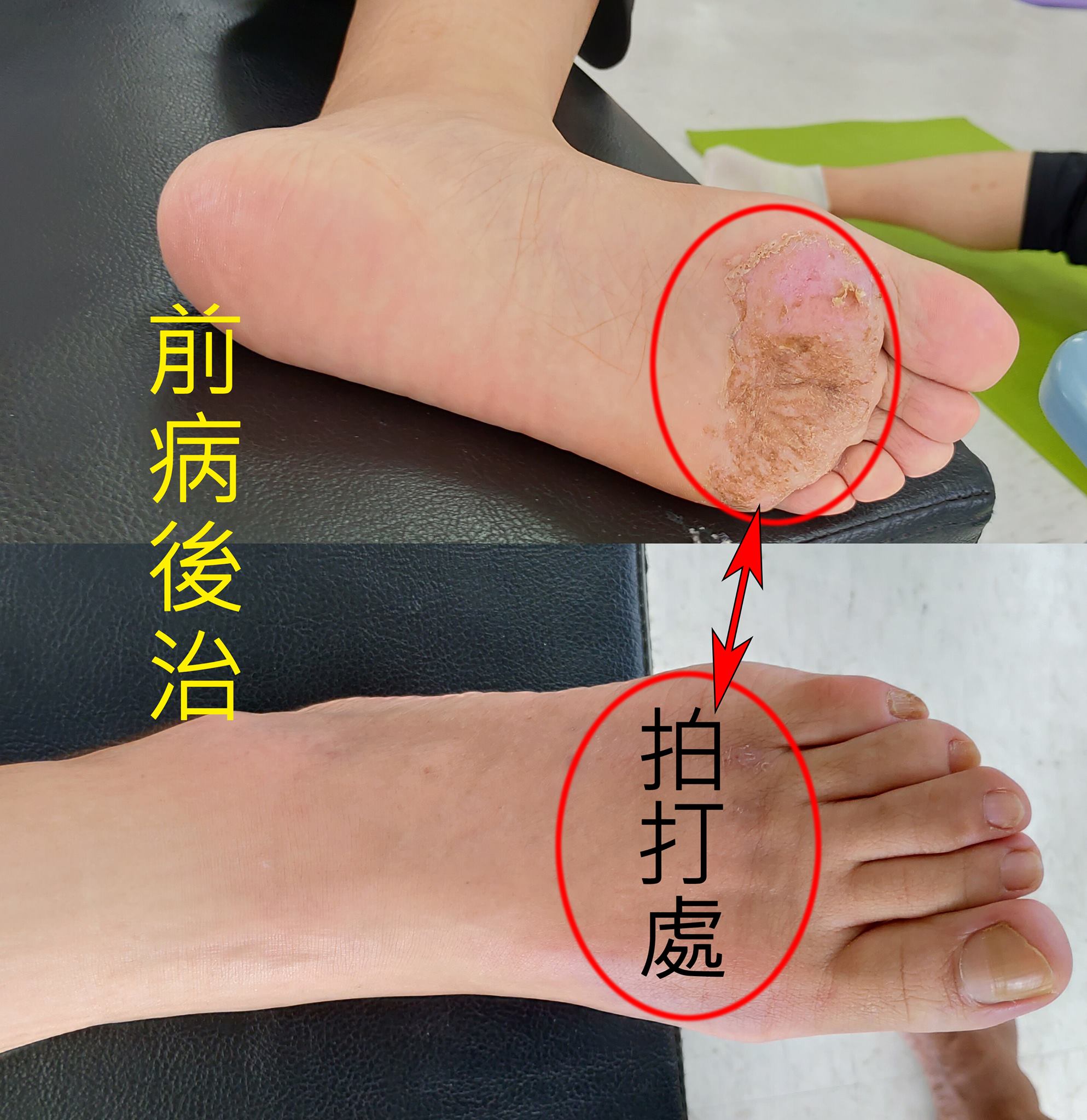 腳底的癬,雞眼,種種的症狀,用四疊拍拍腳背對應的位置改善;