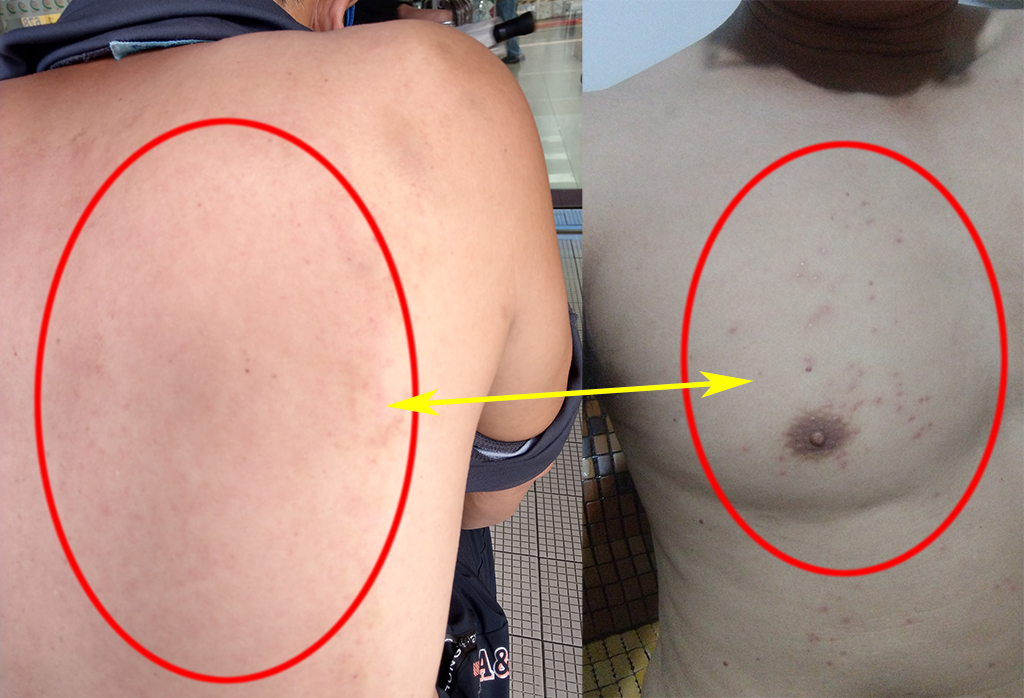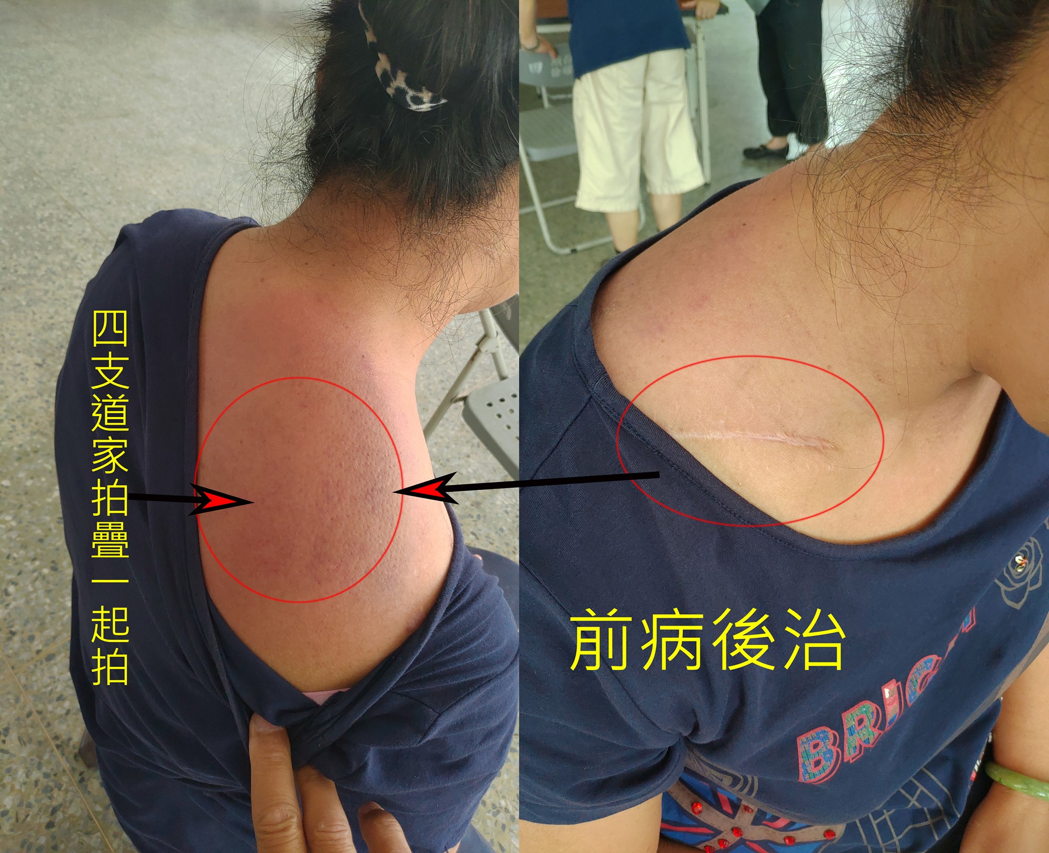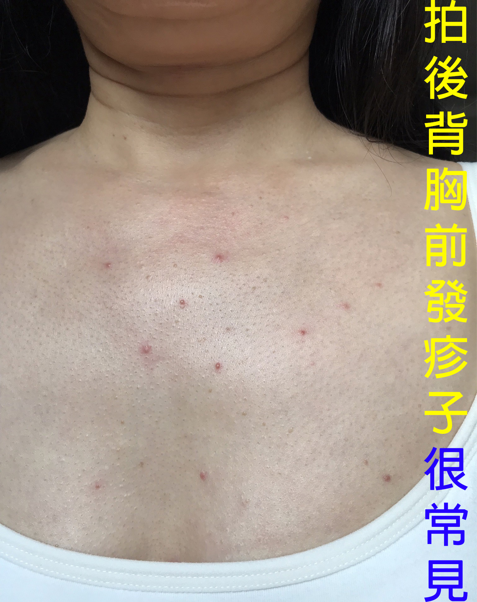 拍後背而前胸沒拍,也會長疹子,這算是排病的一種,也是前病後治的實例!