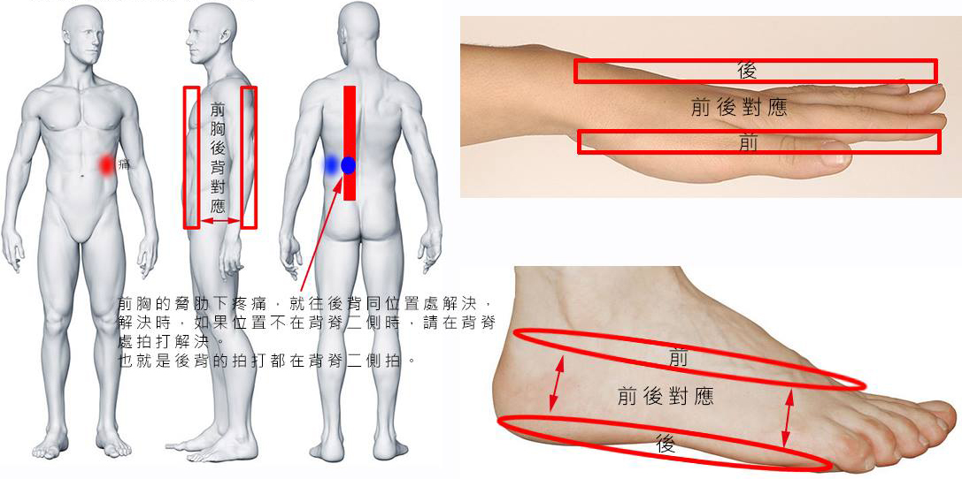 前胸腹部肋間的不適,拍正後方的背脊處;