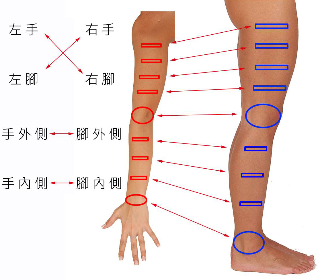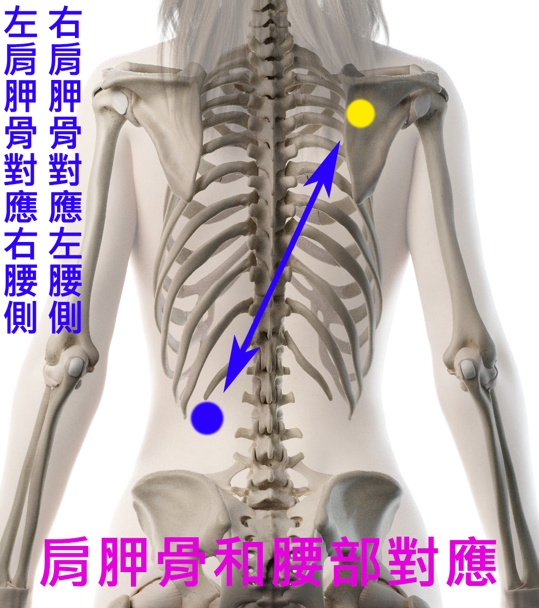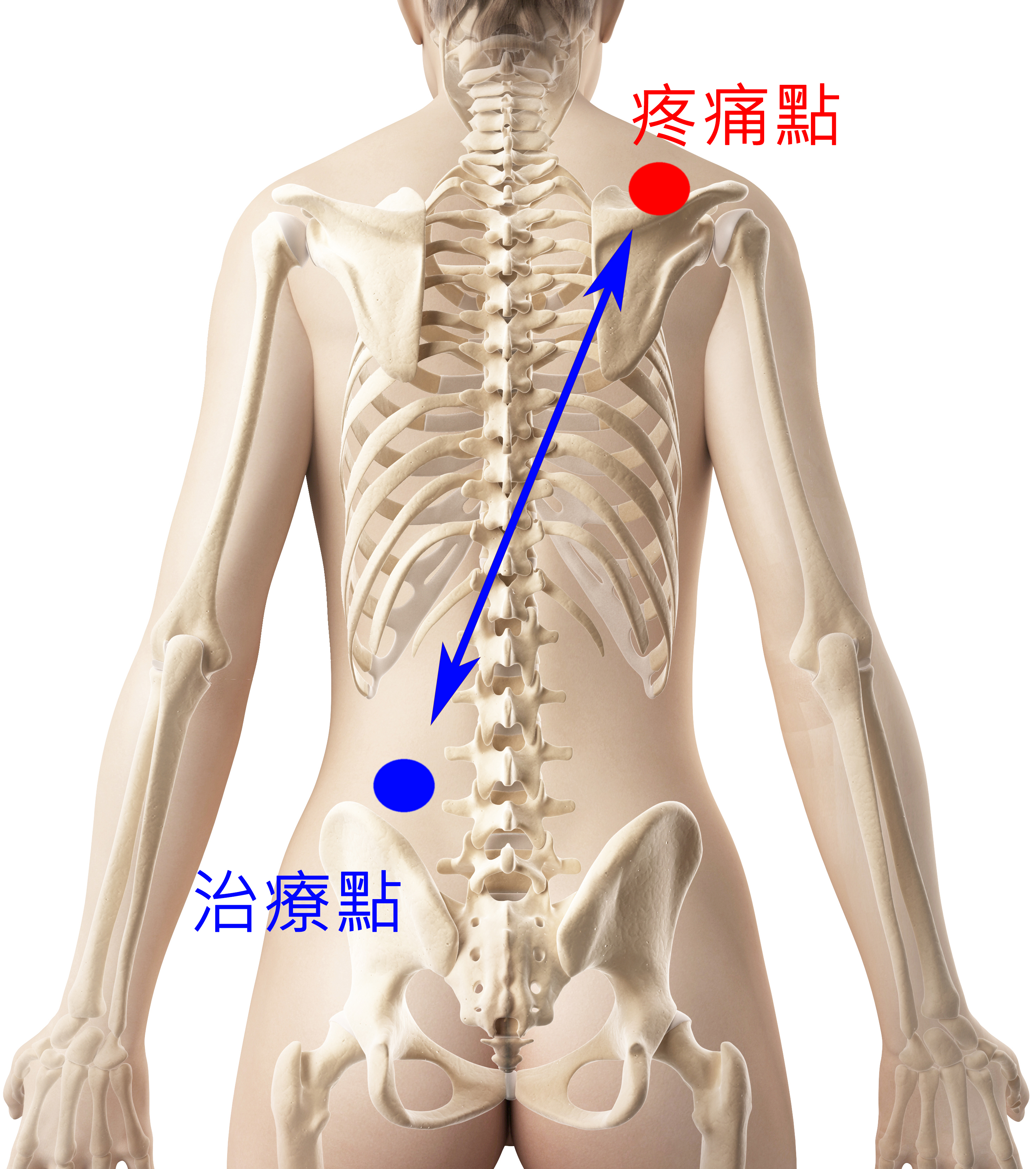 有某個特定的點,有不適的症狀時,可以使用陰陽對位的方式,效果也很不錯,在不適的對應點找痛點拍,如下圖: