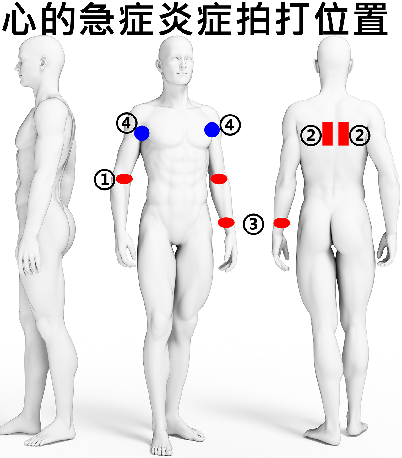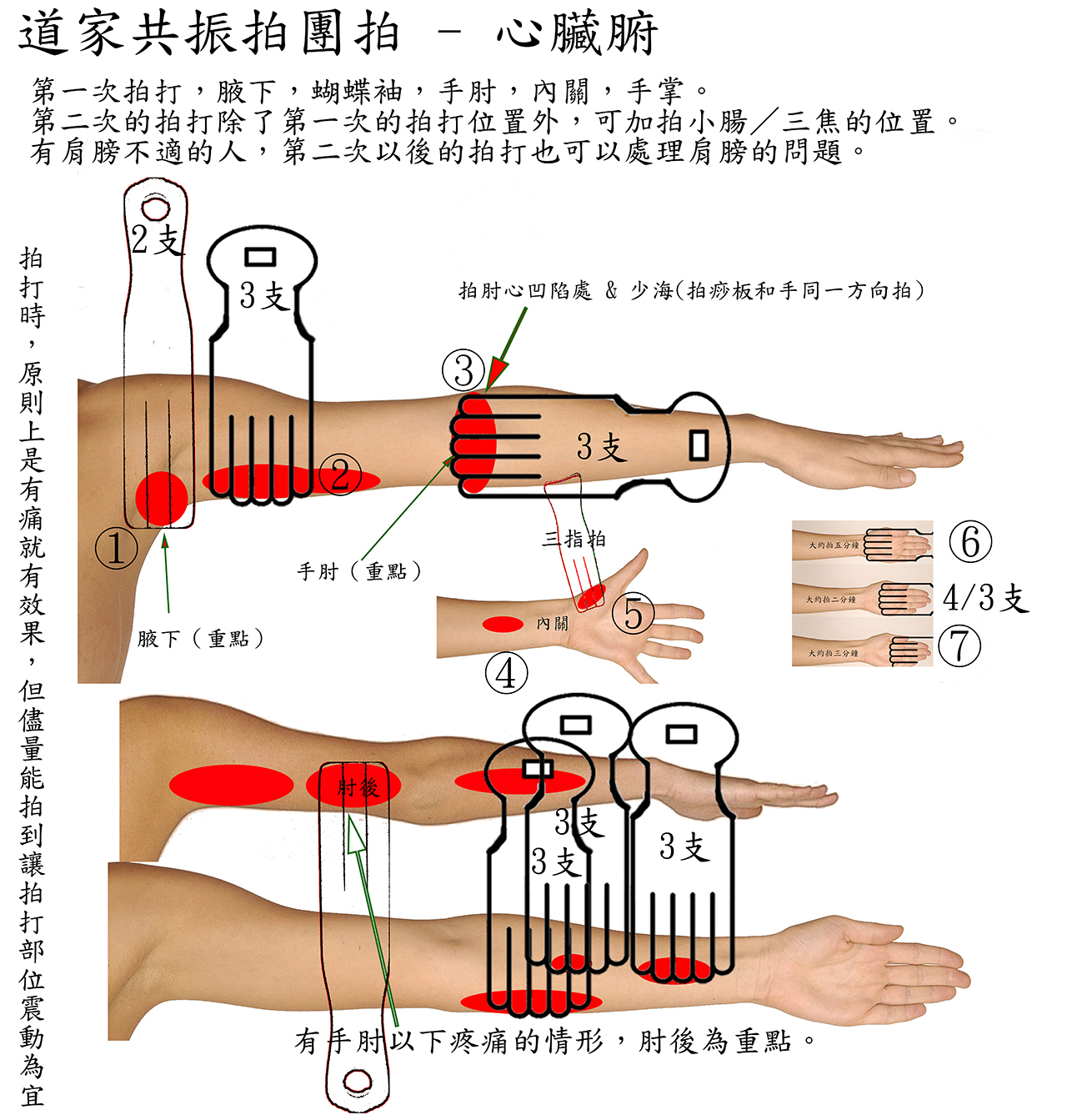 內經:諸痛癢瘡,皆和心臟有關,所以後背拍完後,接著拍心臟的相關經絡,可以增強心臟的氣血,這樣一來就可以承受接下來的後續拍打;