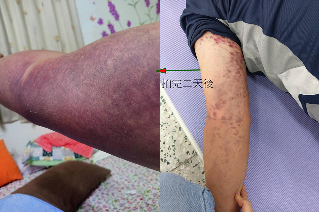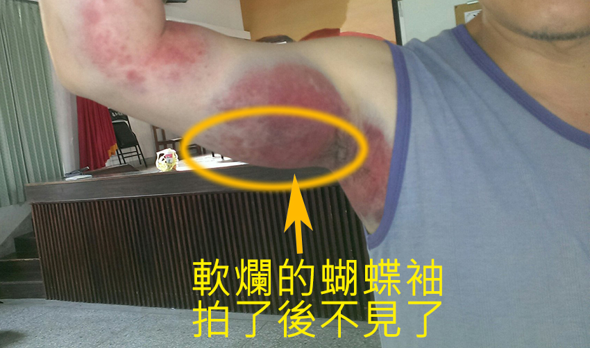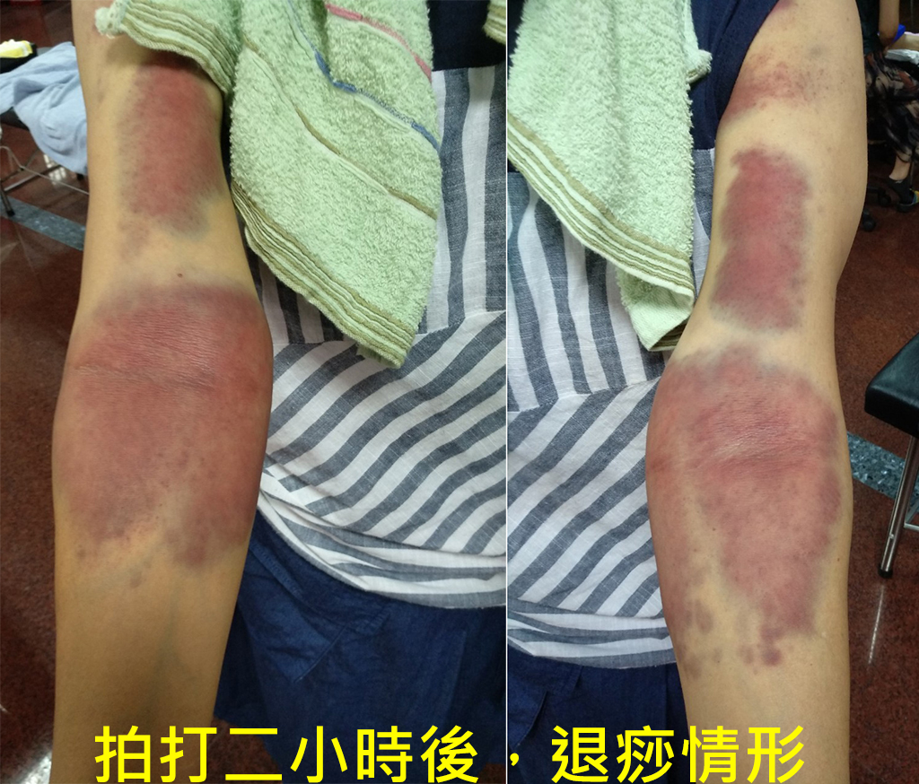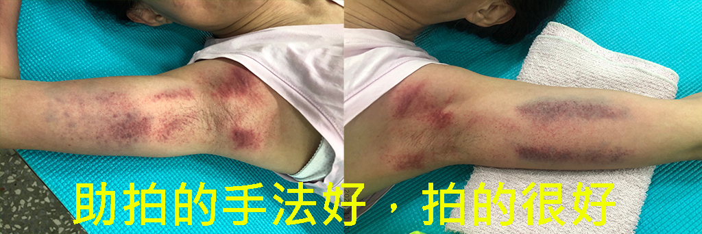 在蝴蝶袖的位置拍出痧後,有些人這個部位的痧,很難消退;