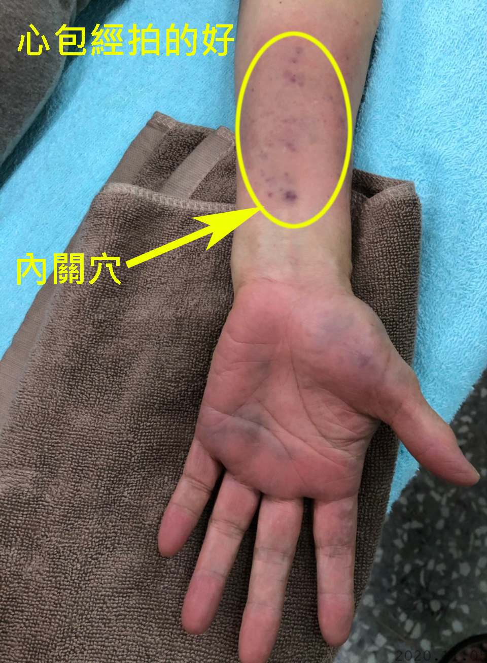內關是手心臟很重要的位置,拍:8~10分鐘(以不痛為標準);