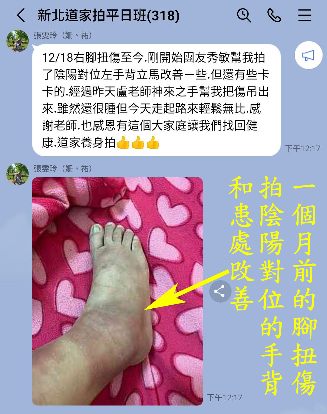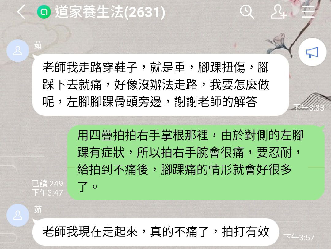 道家拍法改善長年的舊傷後,不只行動恢復自如,還恢復了萎縮的肢體,連皮膚都變好了呢!