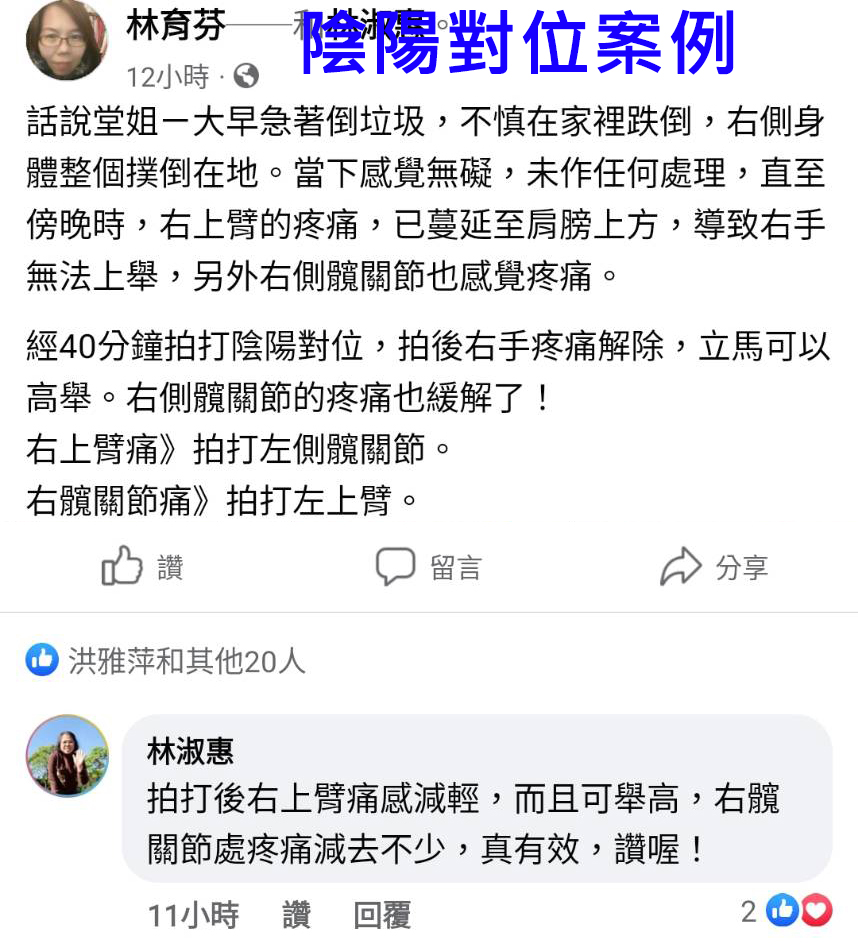 拍了陰陽對位的地方後,可以加快新傷修復的速度,恢復健康!