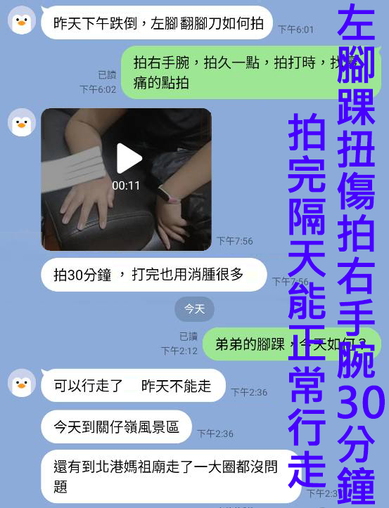 新傷不能拍患處,舊傷則可以直接的拍受傷的患處!