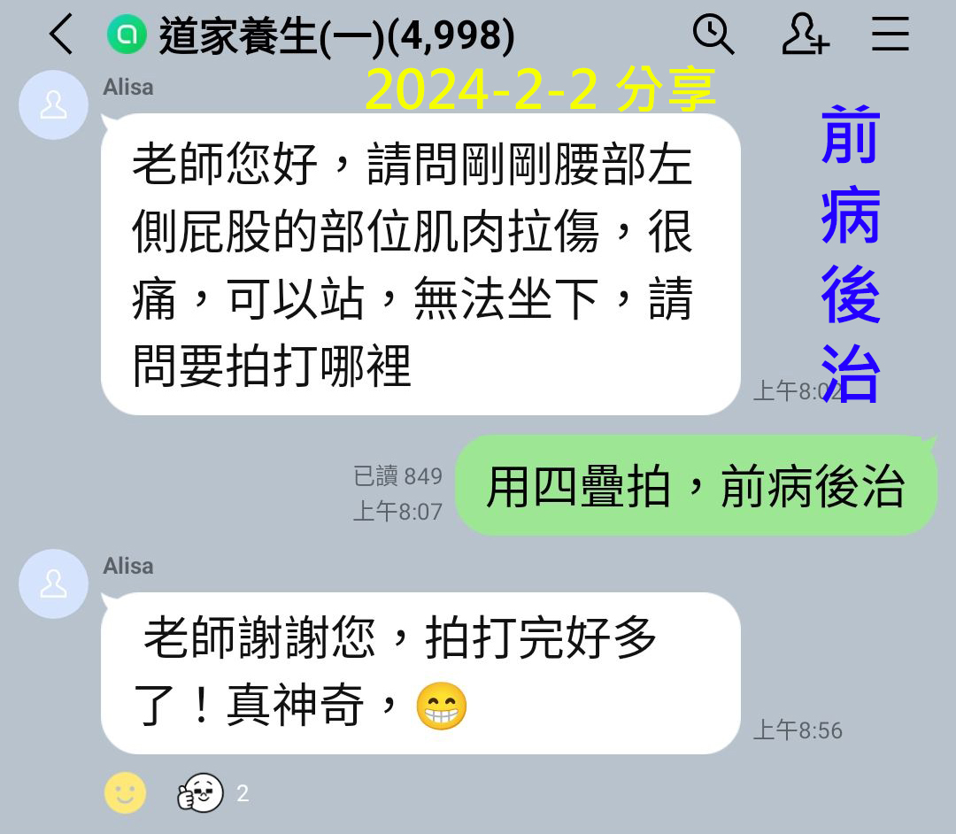 道家拍法用受傷的時間點來區分「新傷」和「舊傷」(含:開刀手術)!