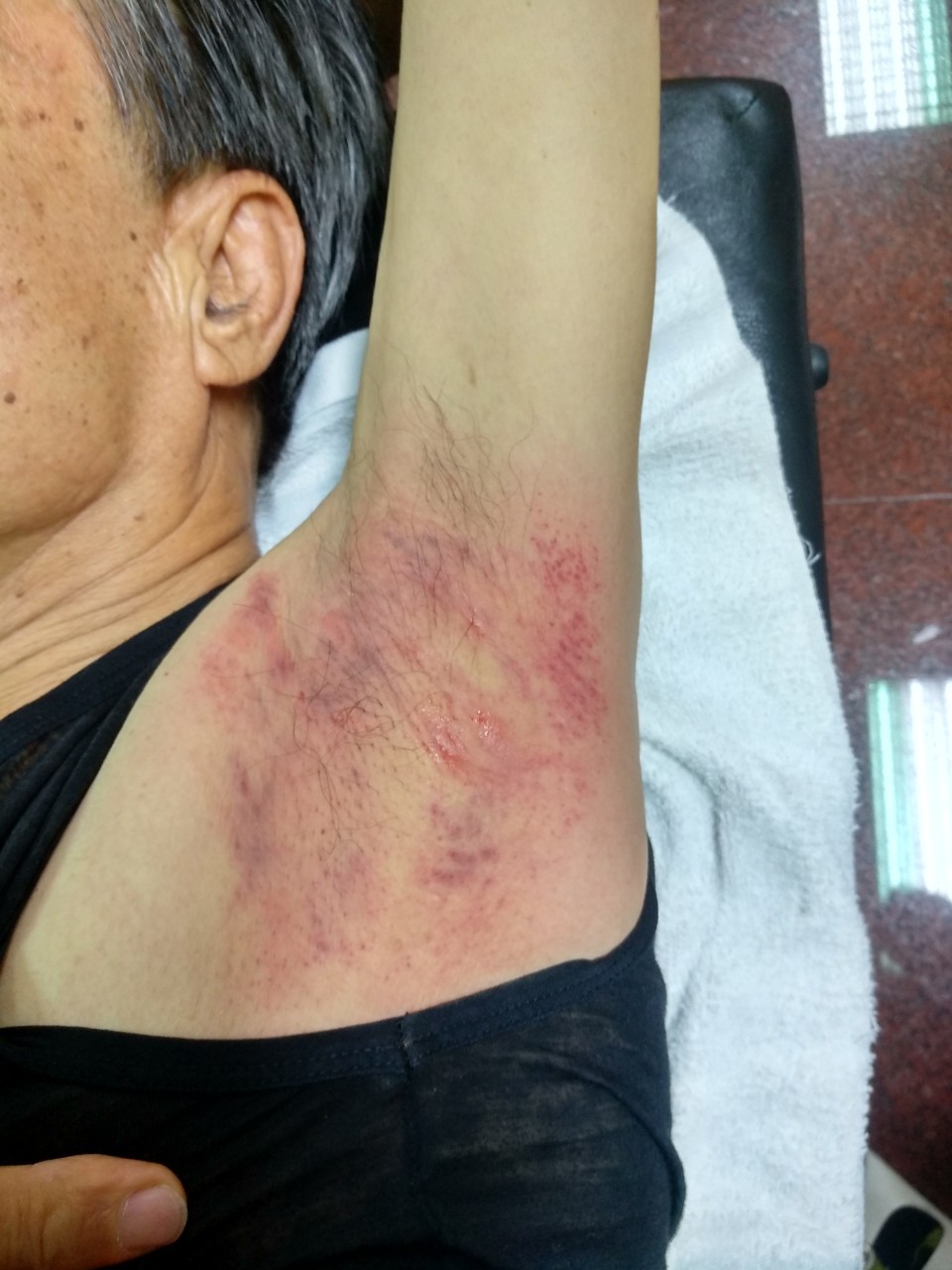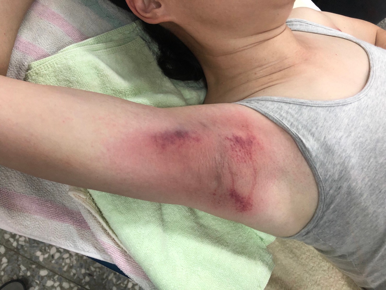 所以在拍這個位置時,如果有拍對位置,也就是長腋毛的地方,大部份的受拍者都可以感受到一直麻到手指去;